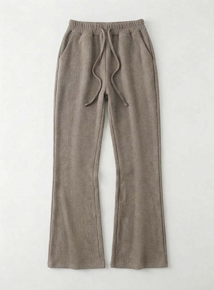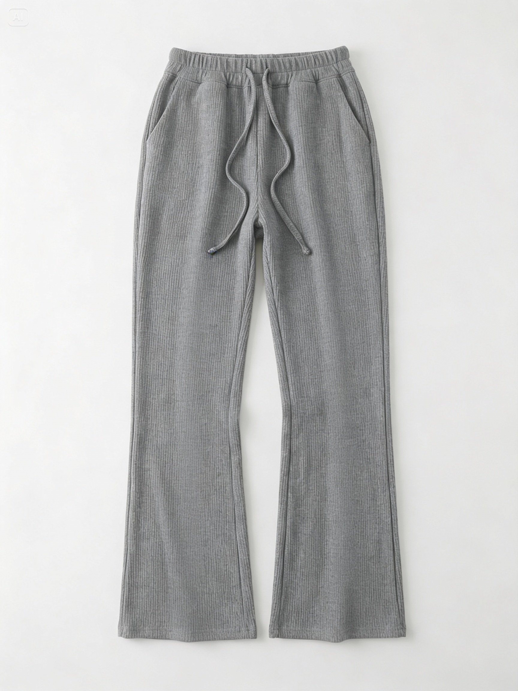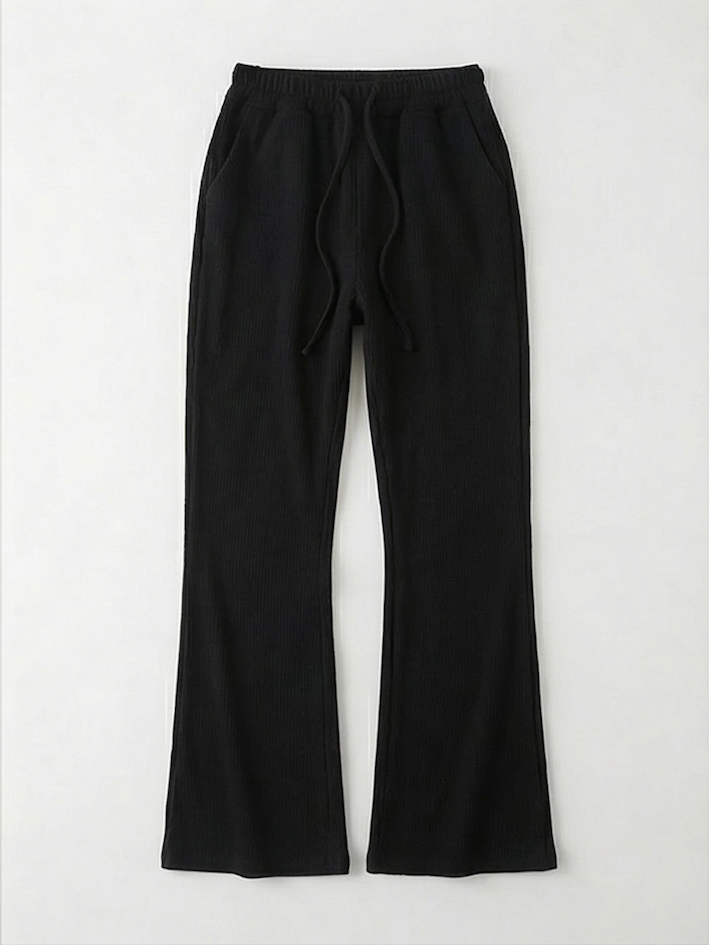 Ribbed Corduroy Flare Pants鬆緊+抽繩設計,側邊斜插口袋,褲管微喇叭(flare)或寬直筒,版型鬆弛舒適,適合休閒或韓系街頭風穿搭。