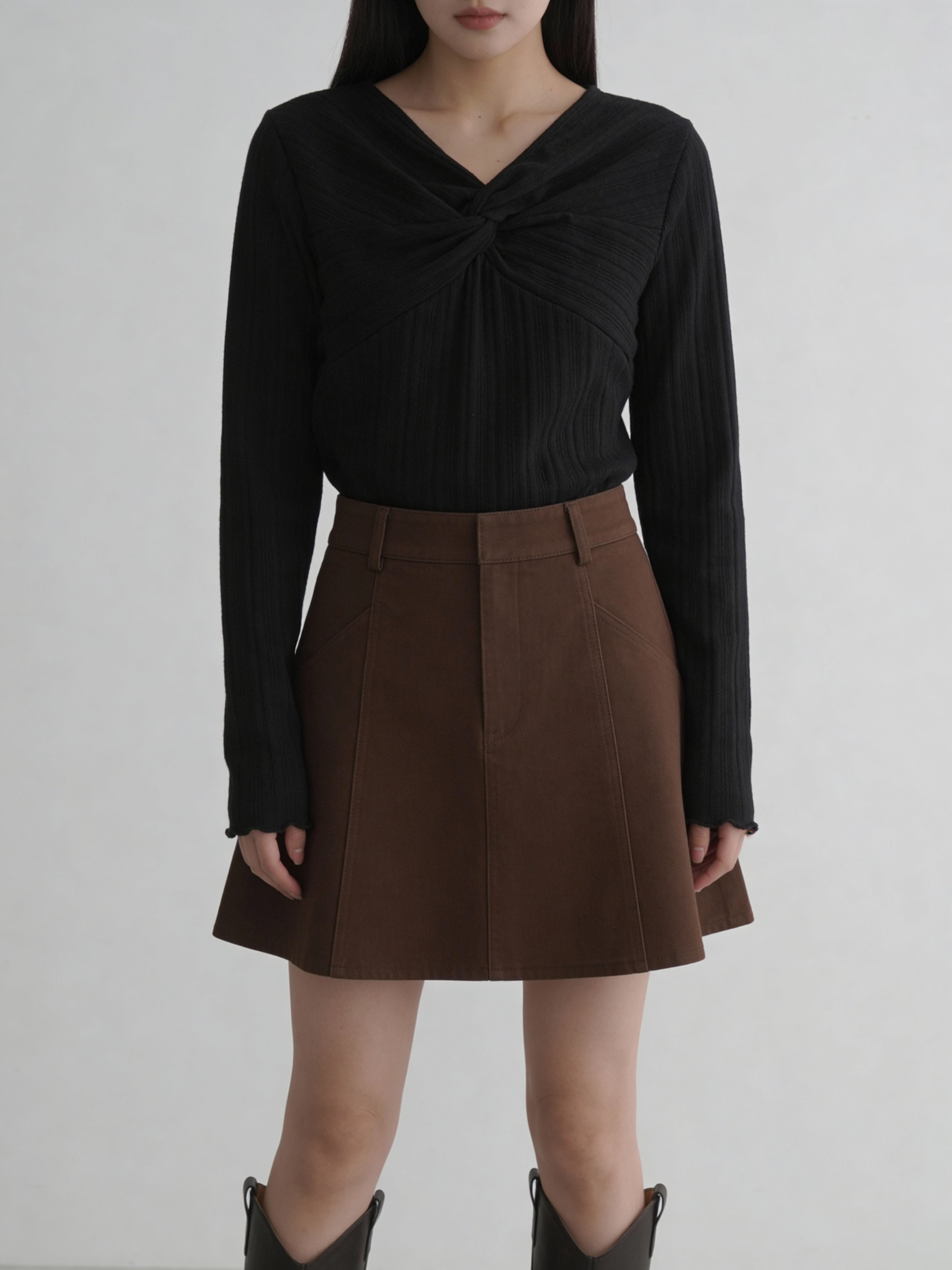 胸前扭結羅紋長袖上衣