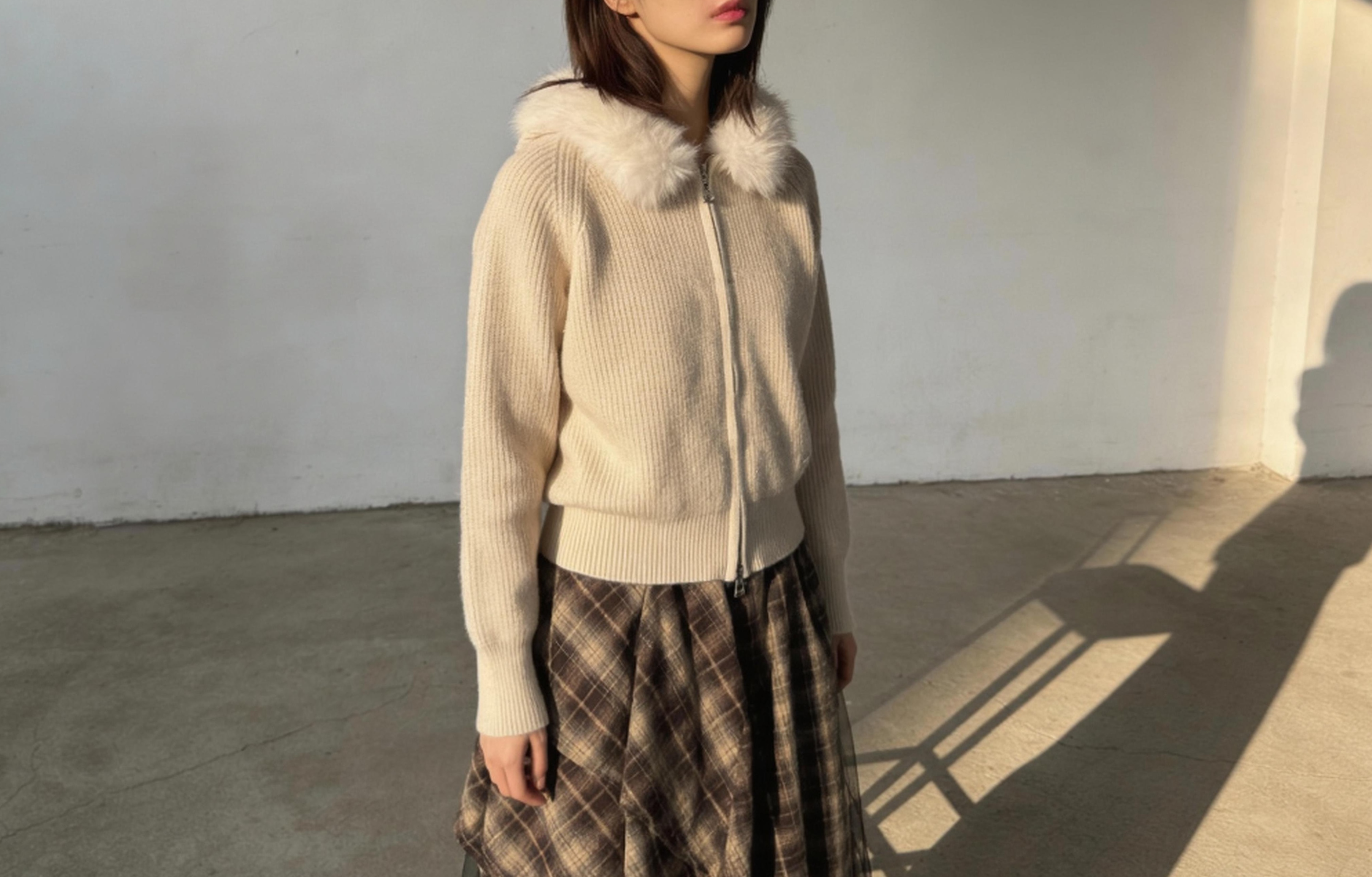 灰色仿毛皮短版 Faux Fur Cropped Jacket with Exaggerated Ruffled Collar Cream Fur-Trim Hooded Knit Zip-Up Jacket Black & White Trim Cropped Knit Cardigan 豹紋短版連帽衫 leopard print cropped hoodie