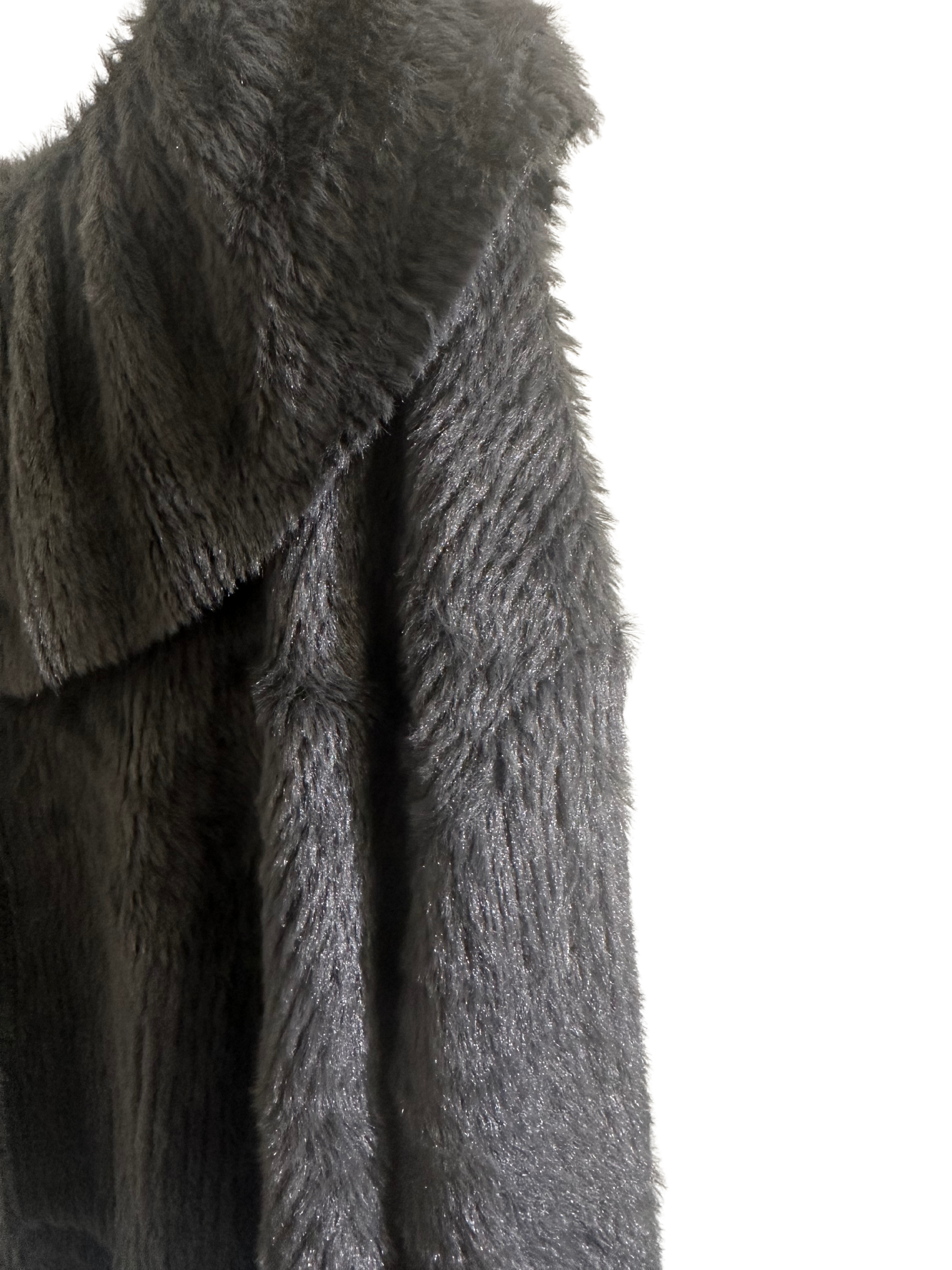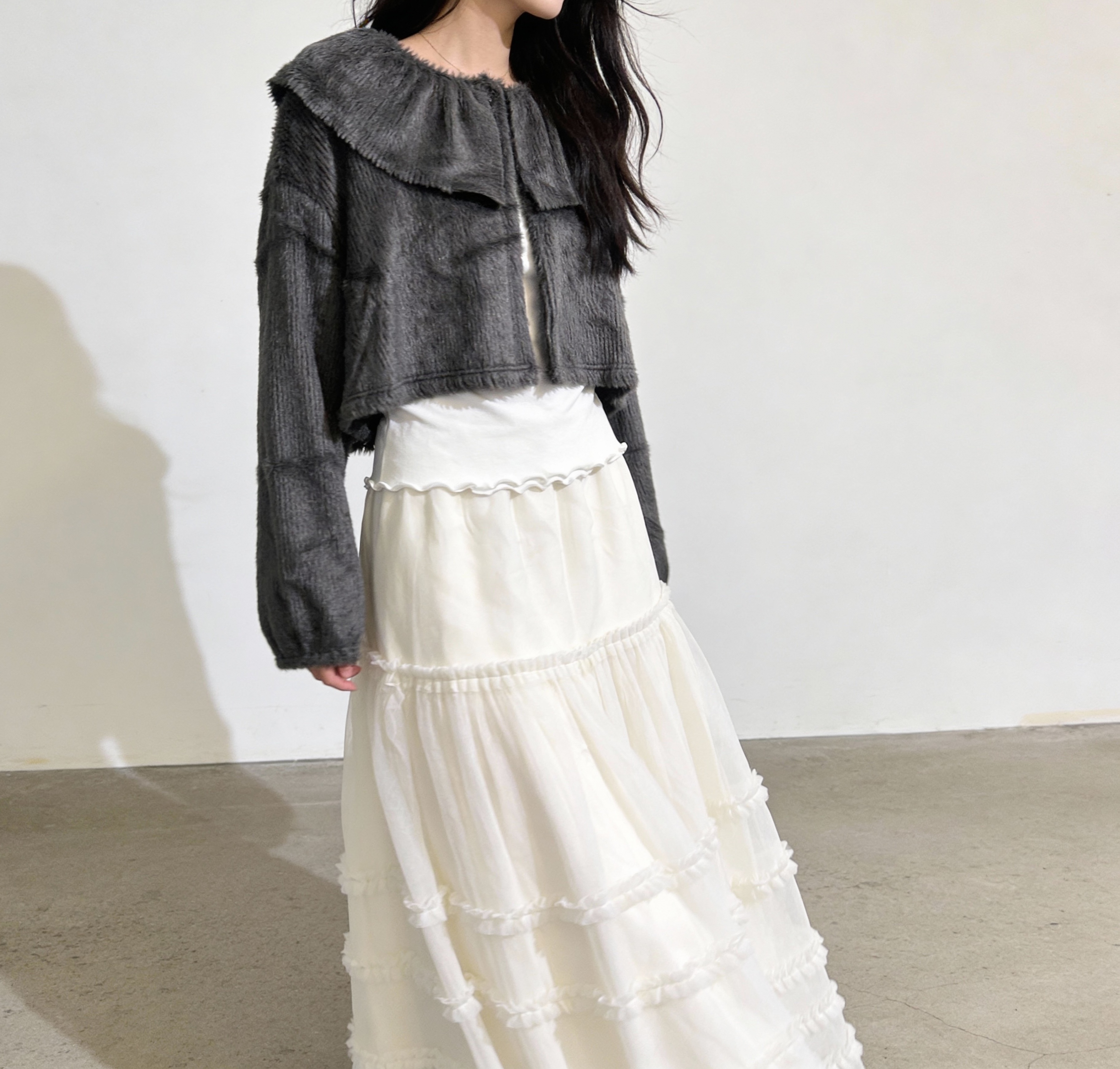 灰色仿毛皮短版 Faux Fur Cropped Jacket with Exaggerated Ruffled Collar