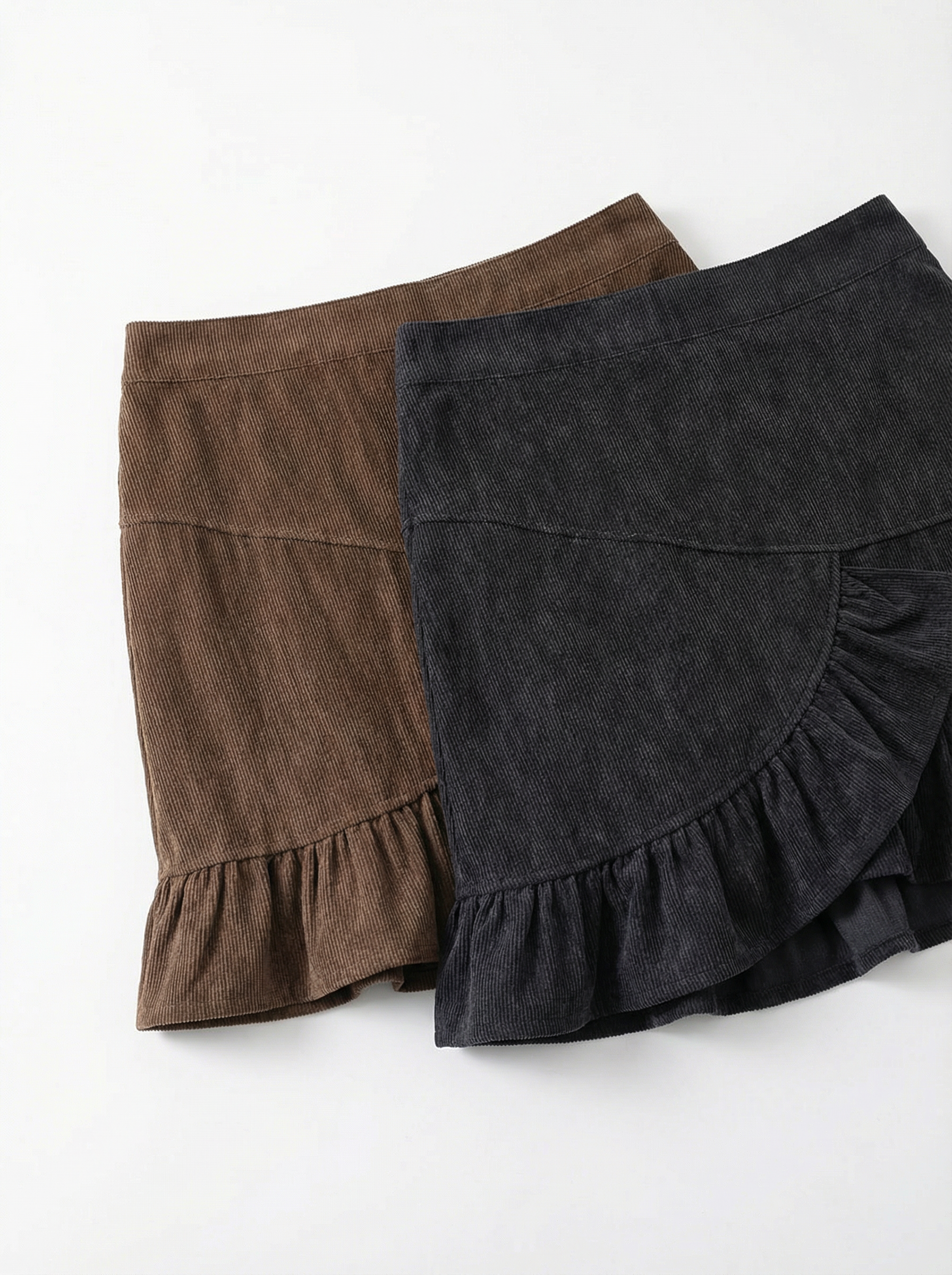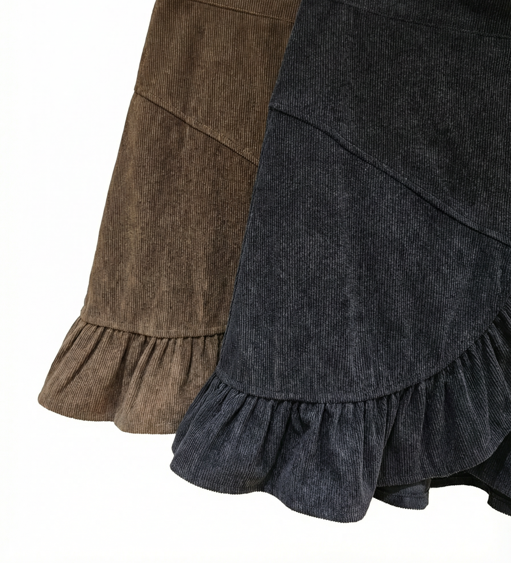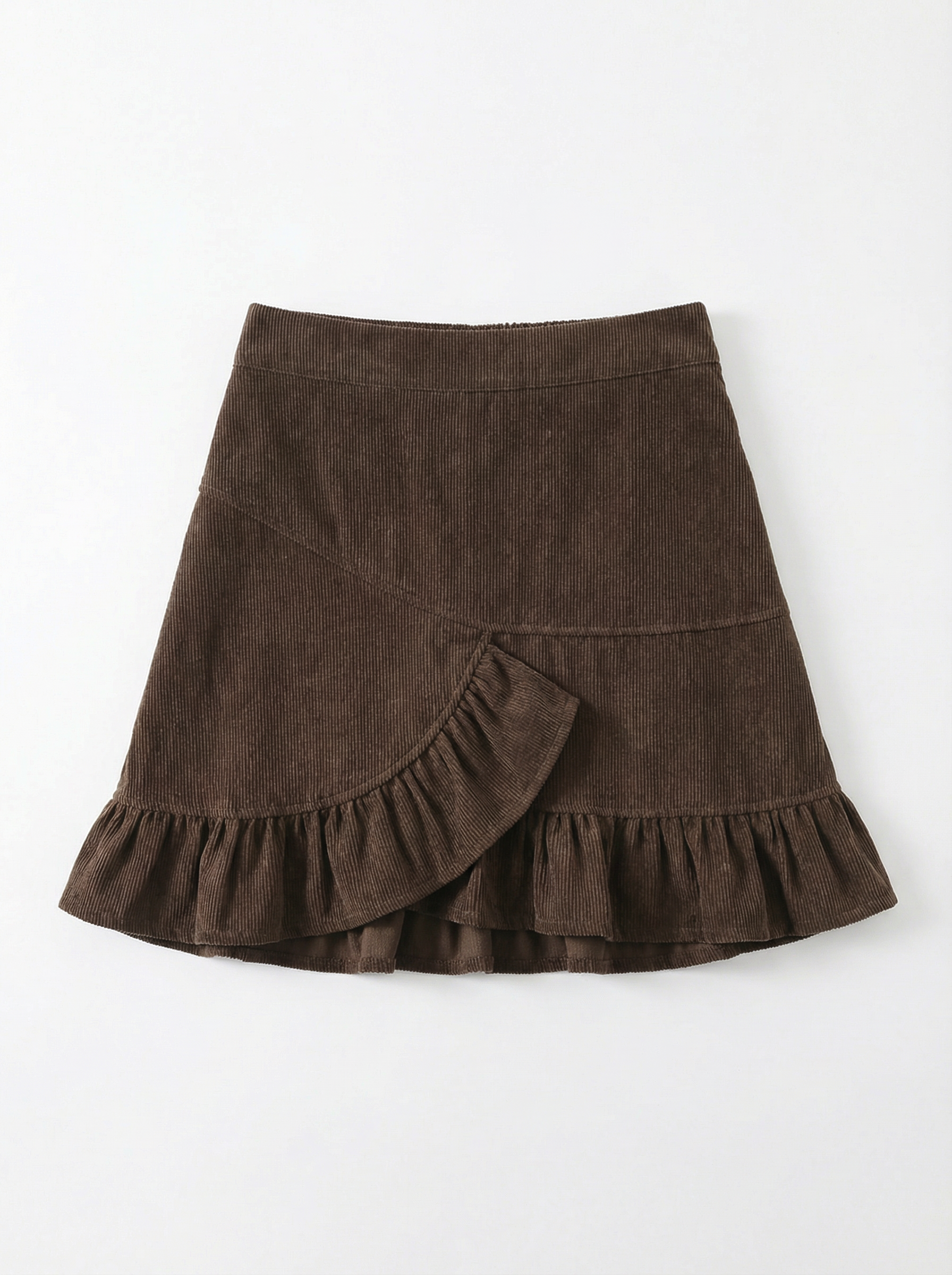 Asymmetric Frill Corduroy Skirt