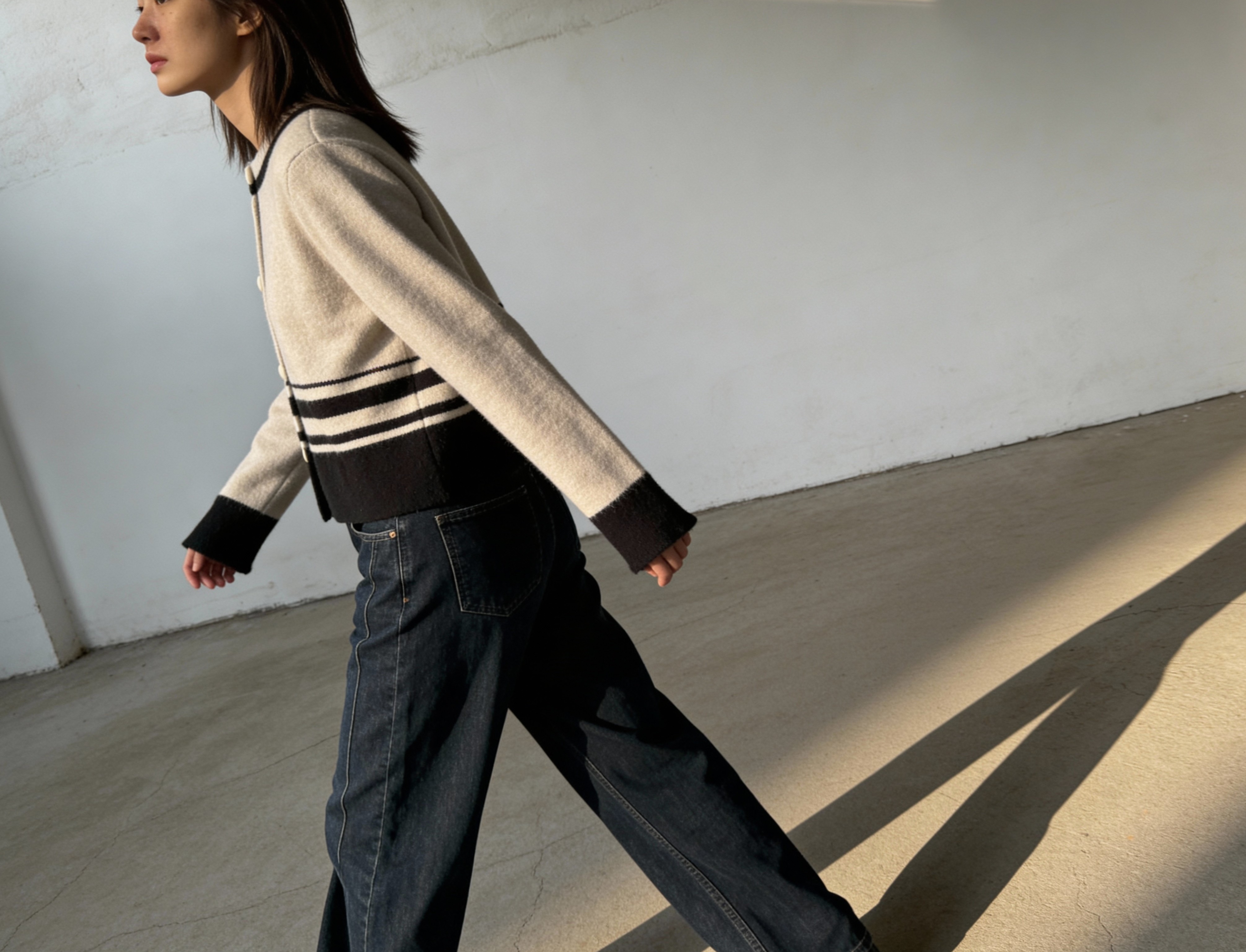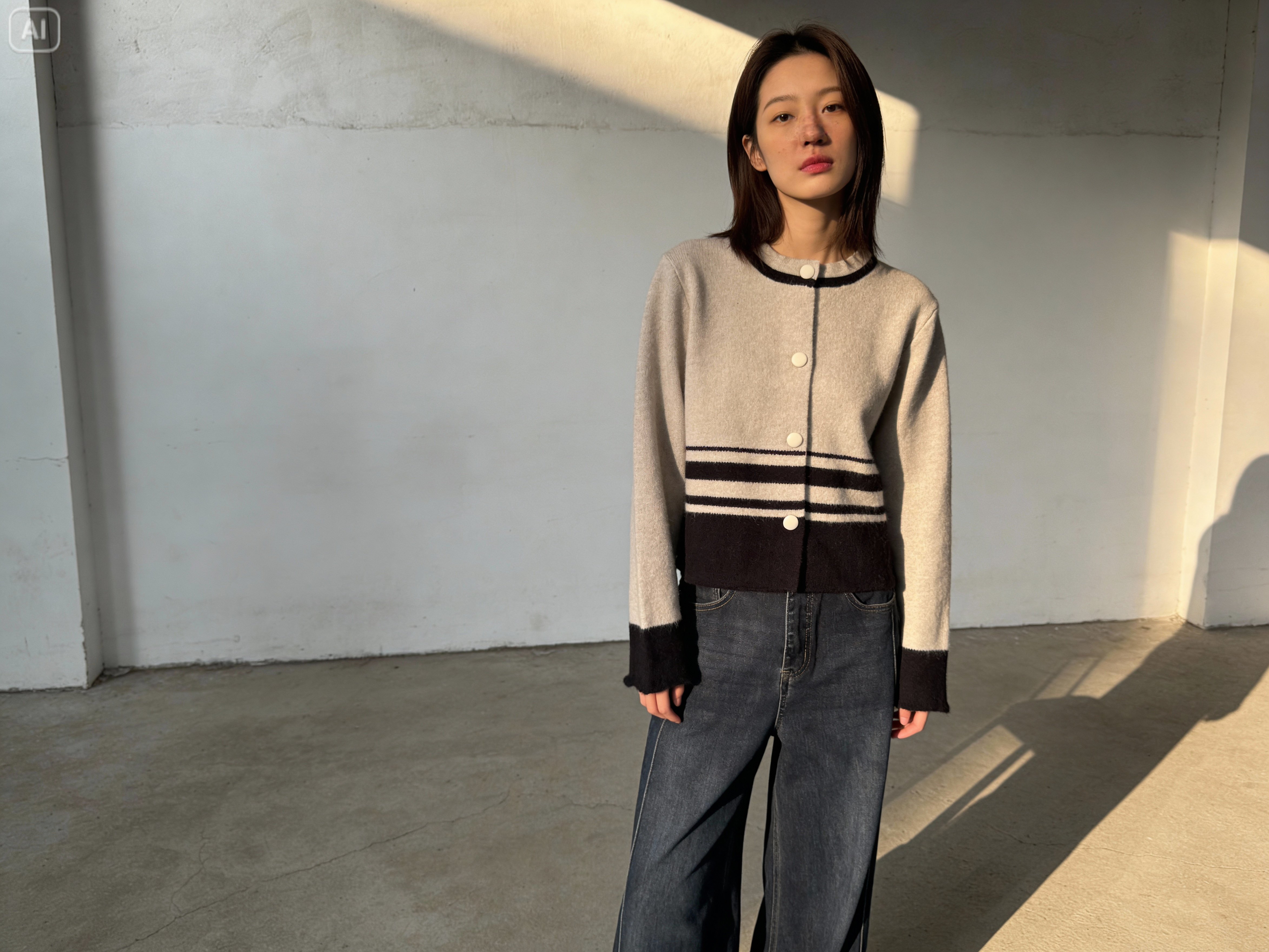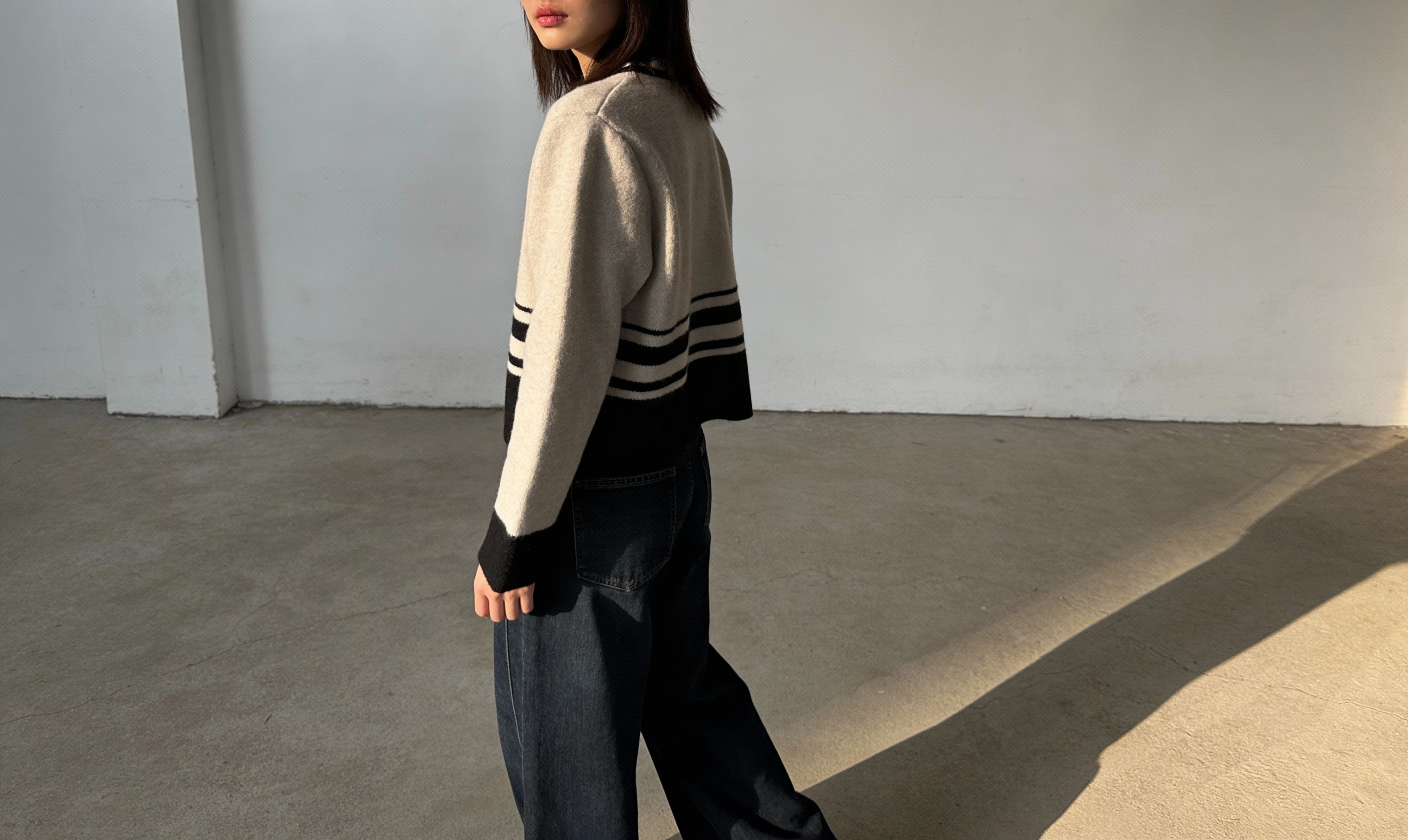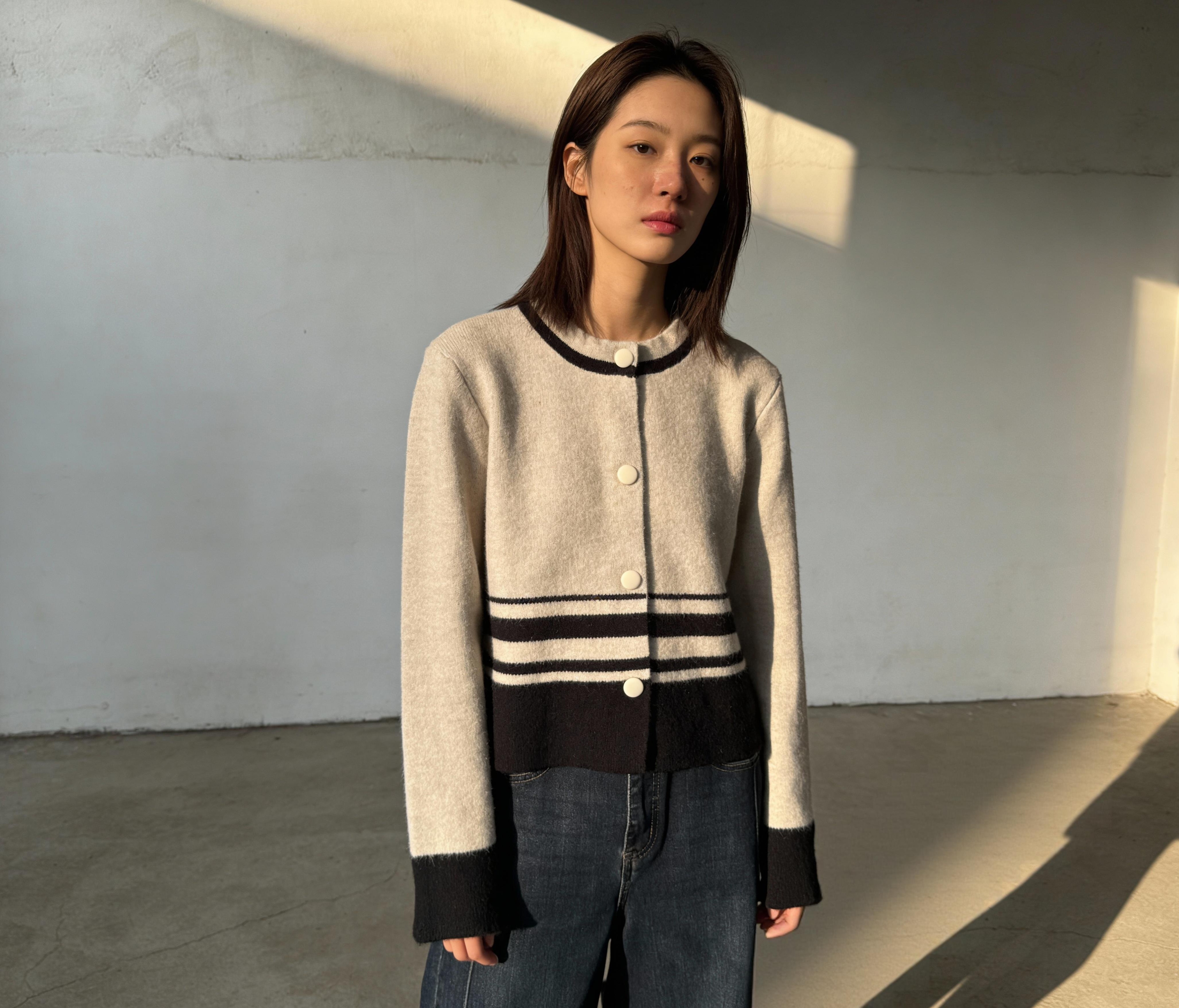短版條紋針織開襟外套