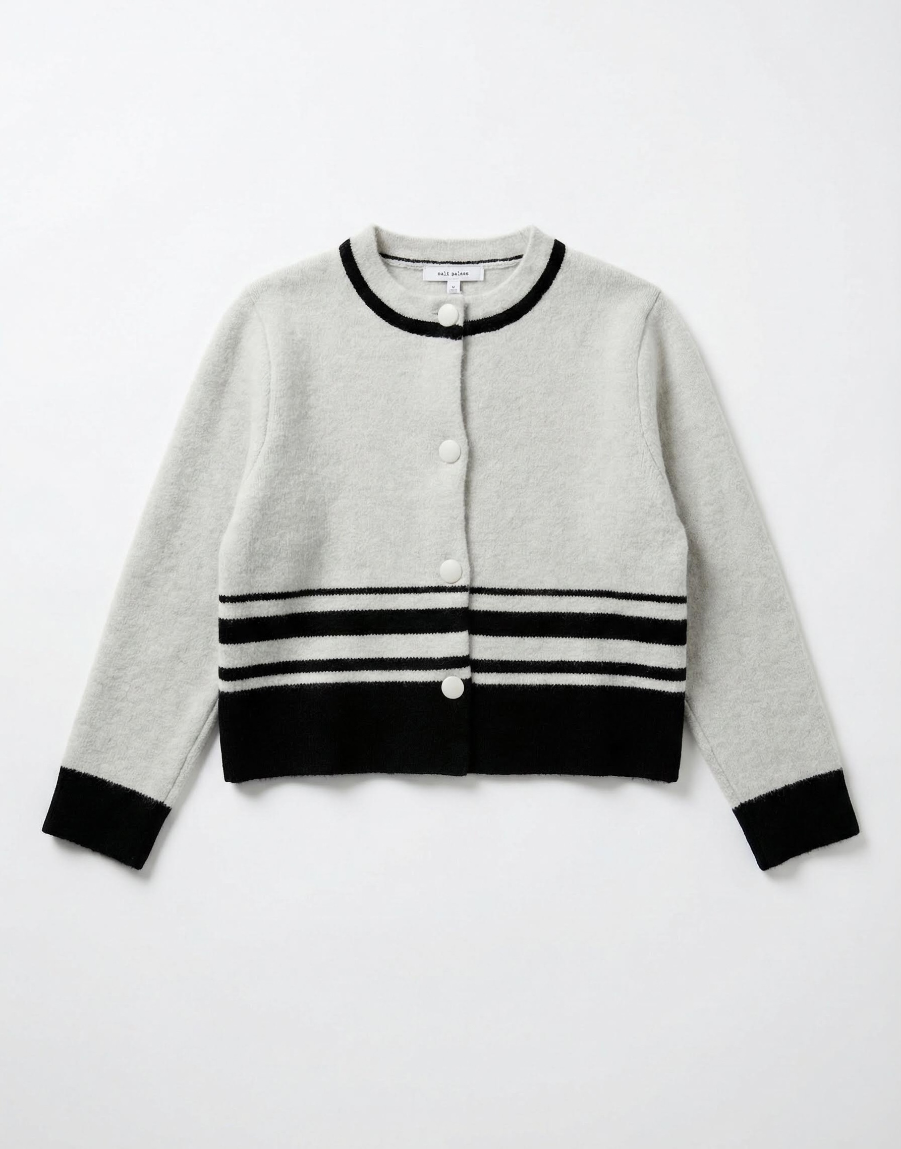 Black & White Trim Cropped Knit Cardigan